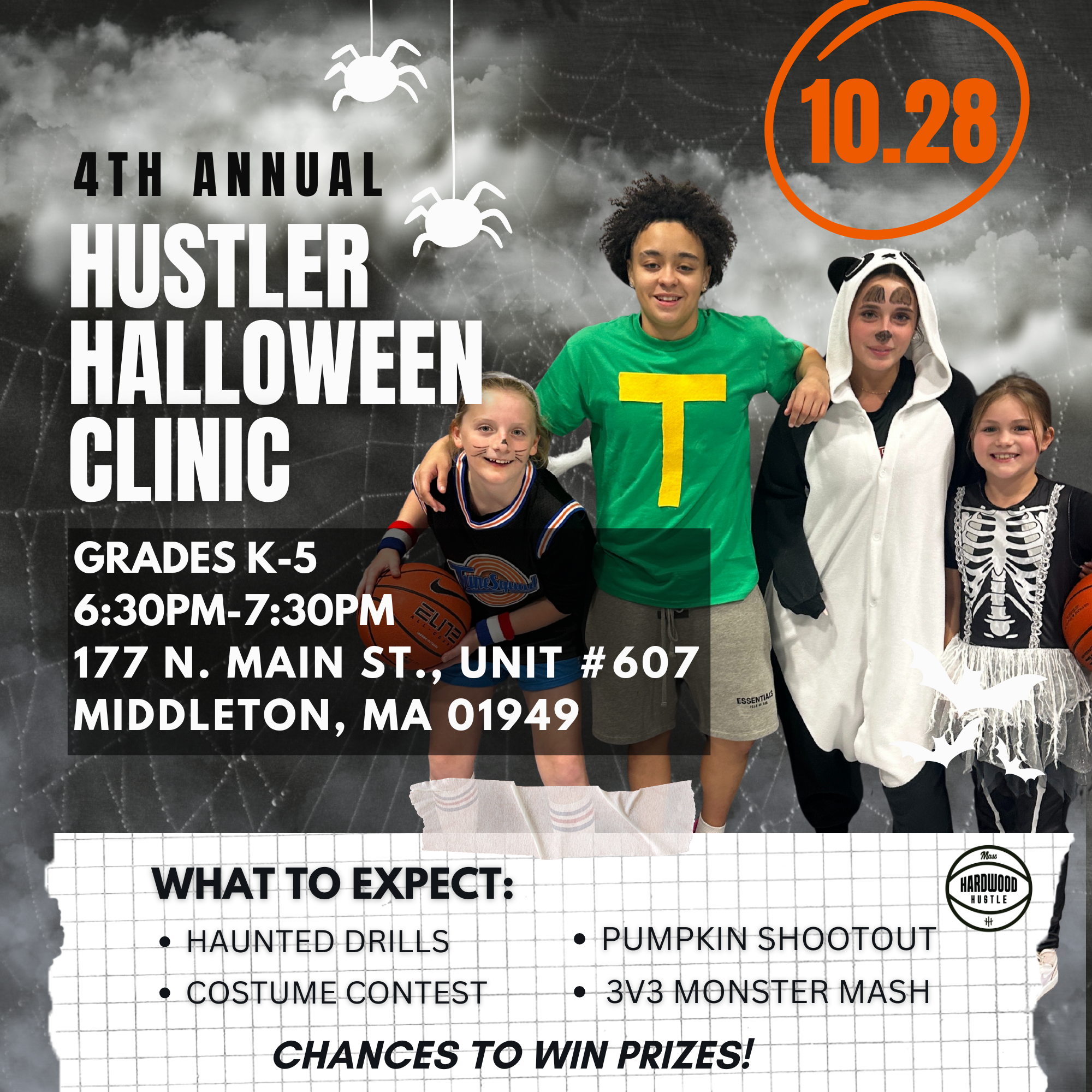 From Freeze Dribbling with Halloween beats to Ghouls & Goblins Tag, Witch Broom Races, Zombie Escapes, and Pumpkin Relays, athletes will stay active while having a blast. We’ll wrap it up with a Spooky Shooting Competition where players can win candy and prizes. Costumes encouraged, let’s hustle, Halloween style!